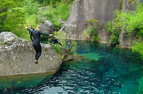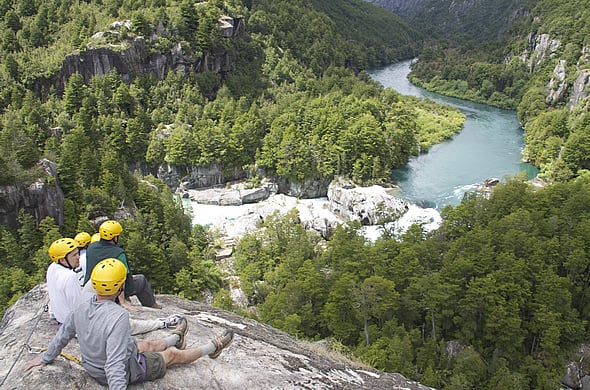 After lunch we paddle some more exciting class 4+ rapids down to the Earth River Mapu Leufu Camp. In the afternoon, we have the option of horseback riding or mountain biking on beautiful trails on the other side of the river accessed by a manual cable car or canyoneering through the 400-foot deep Rio Blanco slot canyon. Wearing wetsuits and river shoes, we hike, climb, and swim through this incredible natural labyrinth of white boulders, clear azure pools and waterfalls. Those people not wishing to partake in the Rio Blanco canyoneering can relax at camp.