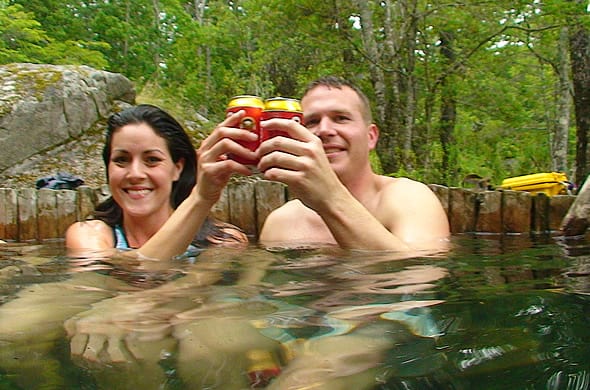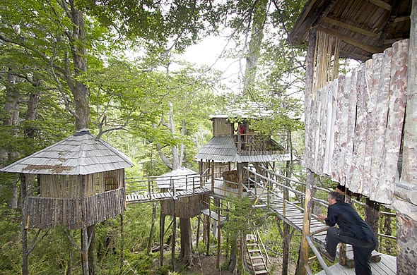 In Chaiten, we board a bus and drive three hours, passing roaring rivers and deep blue lakes to the Terminador Camp. Hidden in the trees are 14 private, two-person, hand-hewn wooden cliff dwellings each with beds and a bird’s eye view of the river’s surging flow over giant, sculpted white granite boulders. Located near the center of the camp is an 18-person wooden hot tub with a cypress deck. We’ll arrive with time to relax before dinner.